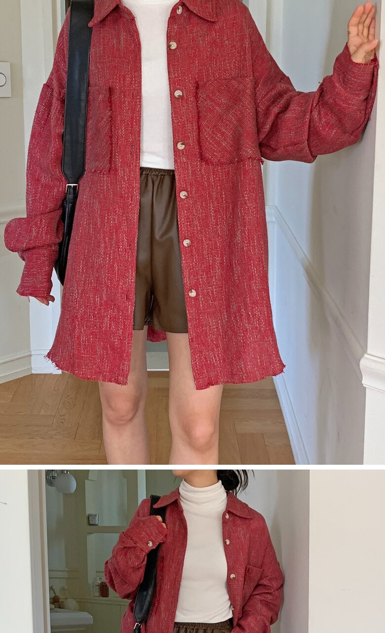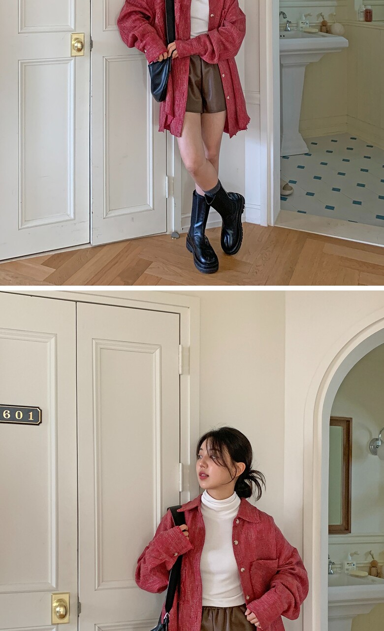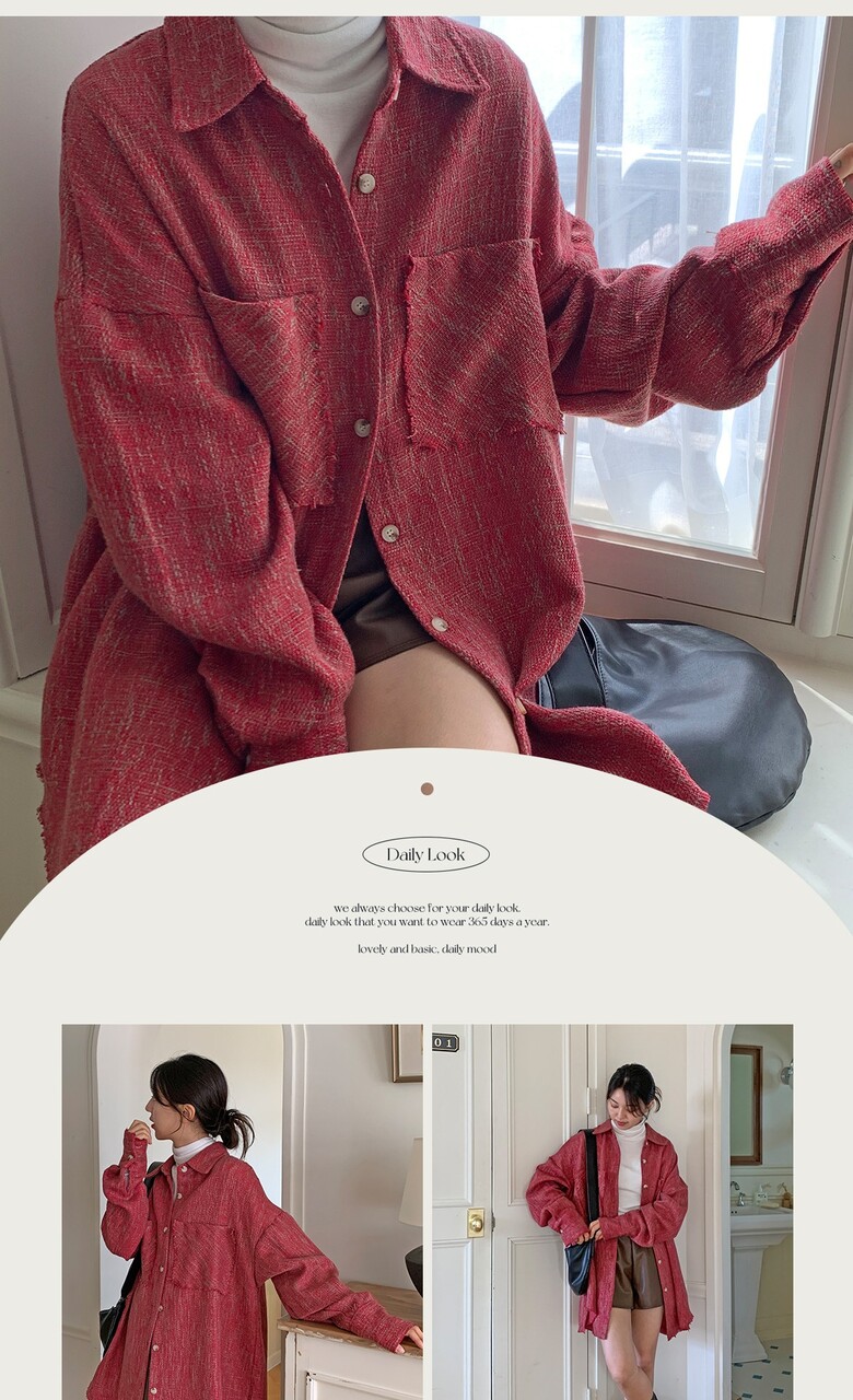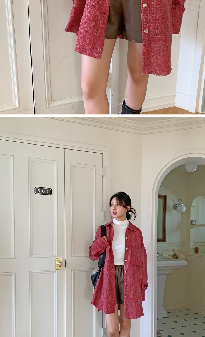 울이 믹스된 트위드 원단으로 고급스러우면서 캐쥬얼한 무드가 매력적인 하이퀄리티 트위드 남방이에요! 넉넉한 사이즈로 다양한 체형에도 여리여리한 실루엣을 연출해주어 꾸안꾸 트위드 남방으로 추천해요~! 컬러는 총 3가지 민트(Mint),레드(Red),블랙(Black) 컬러로 준비했습니다. 사이즈는 FREE로 44~77사이즈까지 착용 가능합니다. ※같은 사이즈라도 체형에 따라 핏감이 조금씩 다를 수 있습니다. 상세사이즈를 확인하셔서 굿초이스해주세요 :) MD.JW