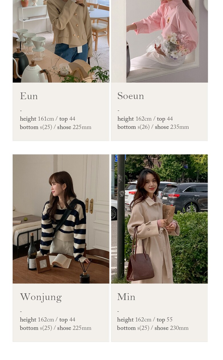 Top 44 / Bust 70A / Pants 26 / Height 162cm / Shoes 235 size
