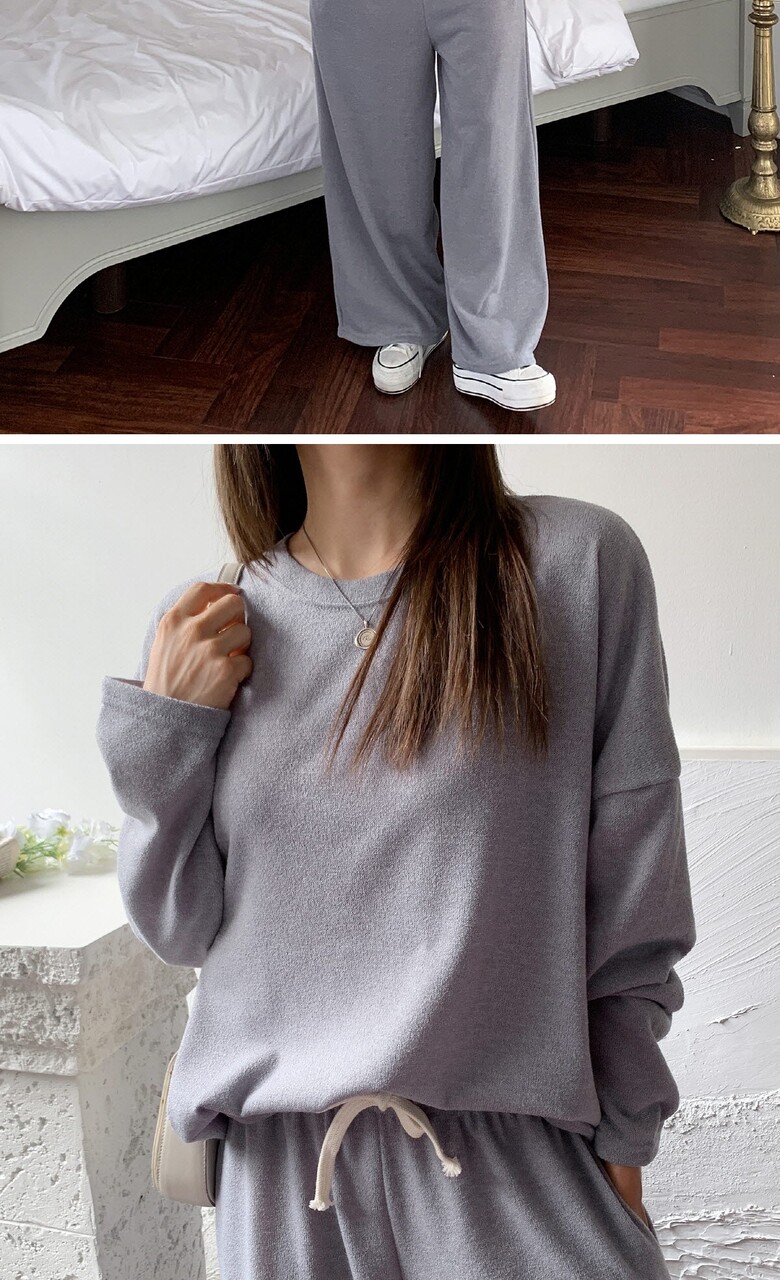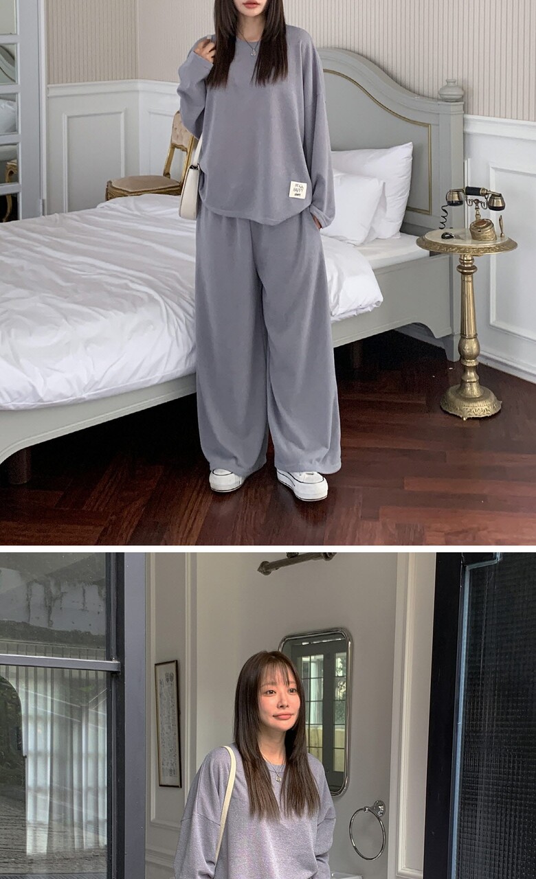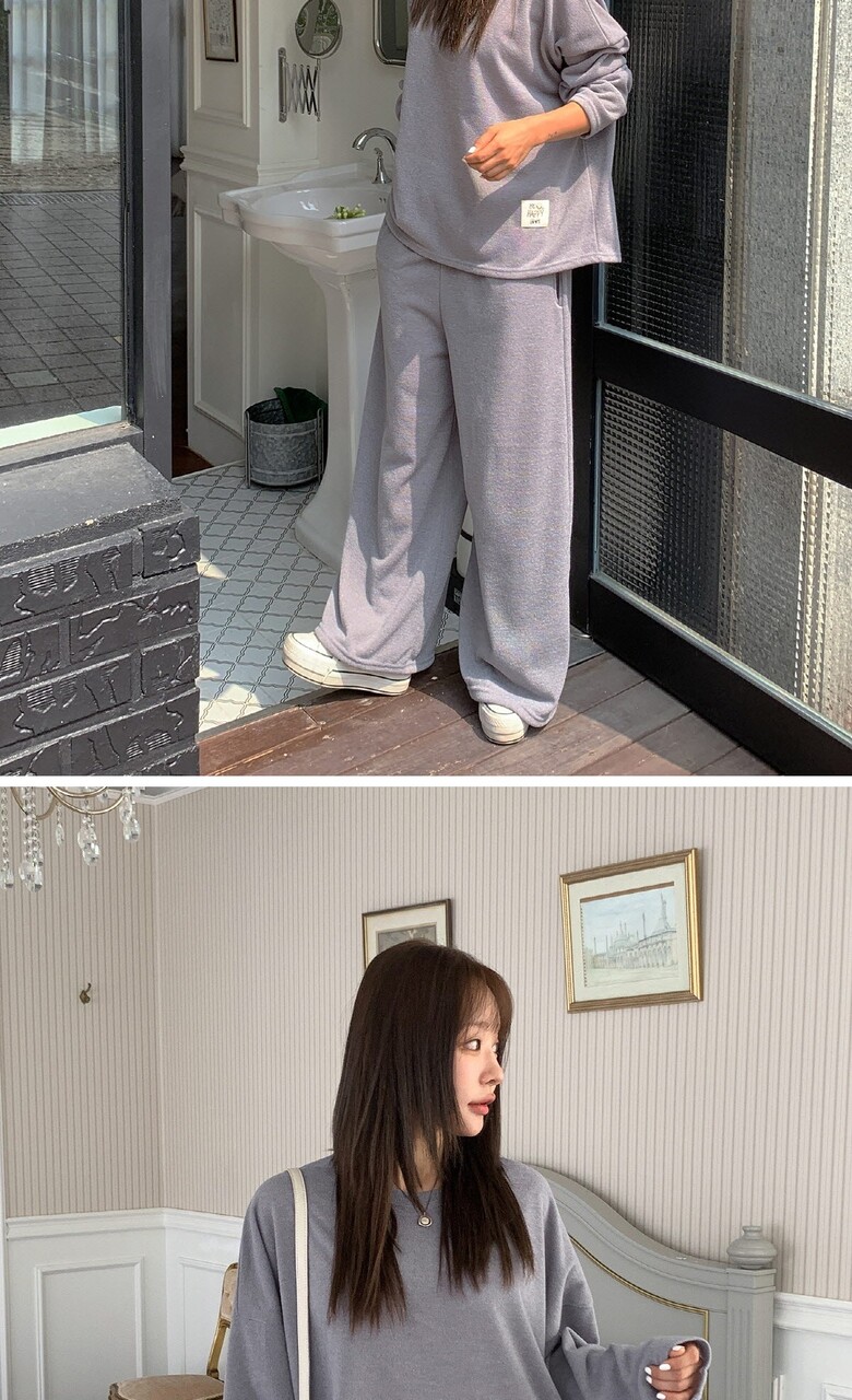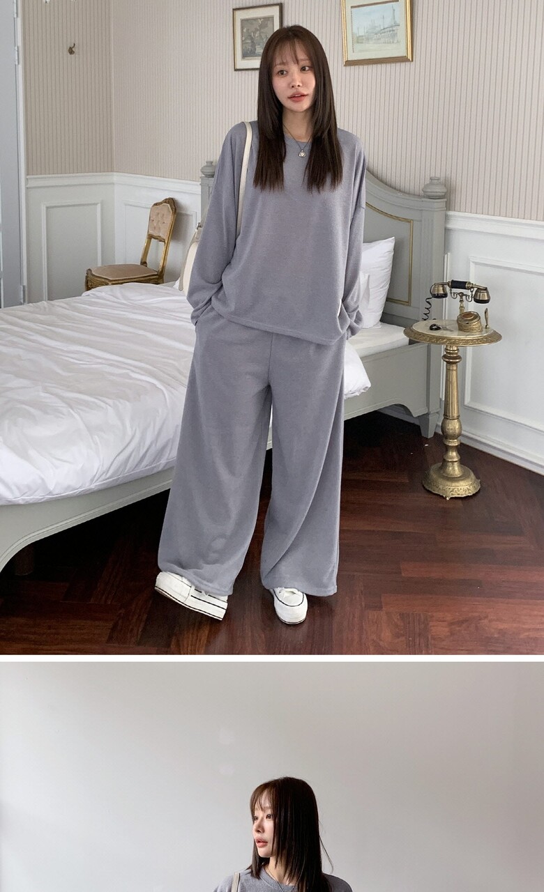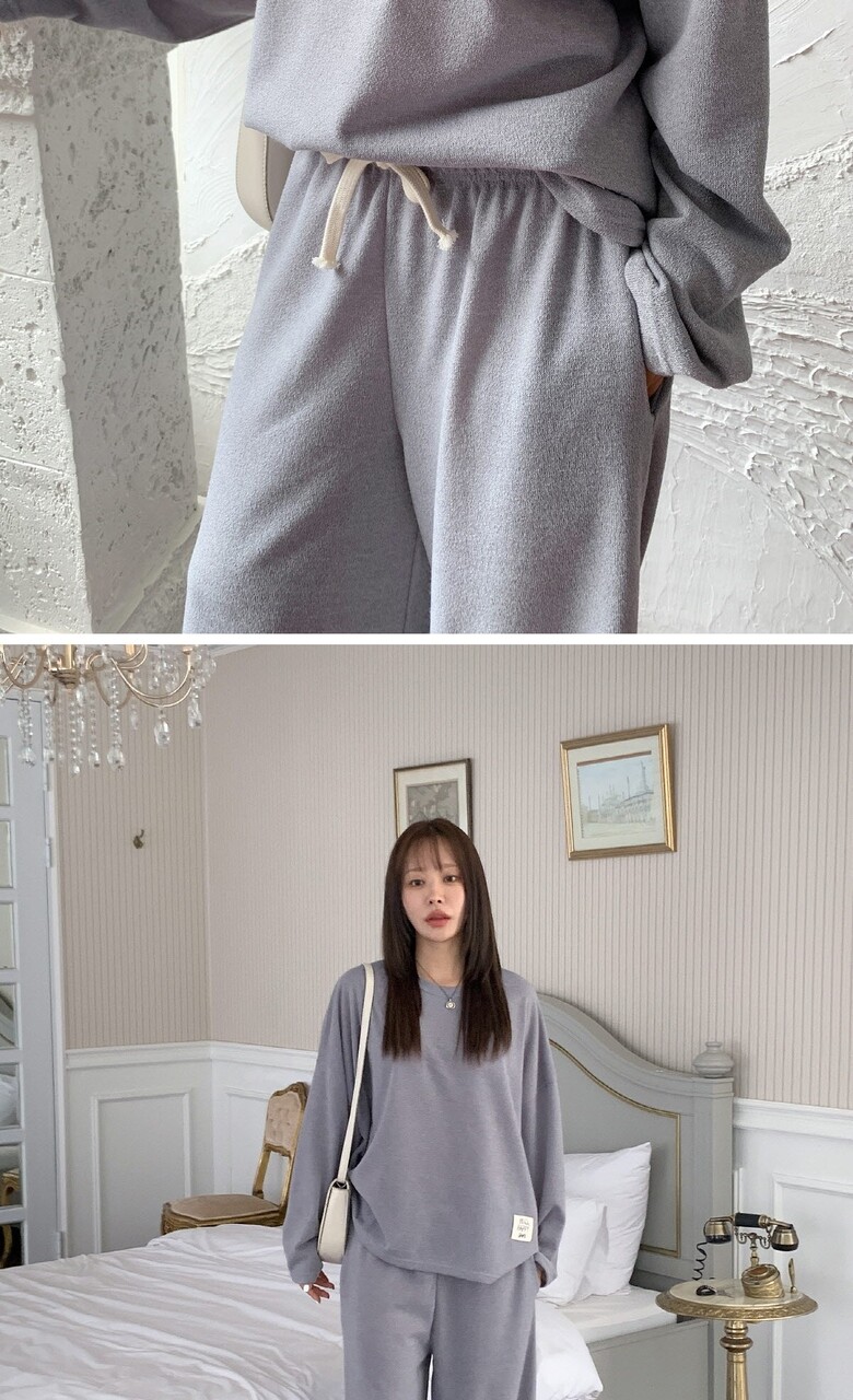 네쥬 여성 가을 기본 라운드넥 긴팔 티셔츠 밴딩바지 세트