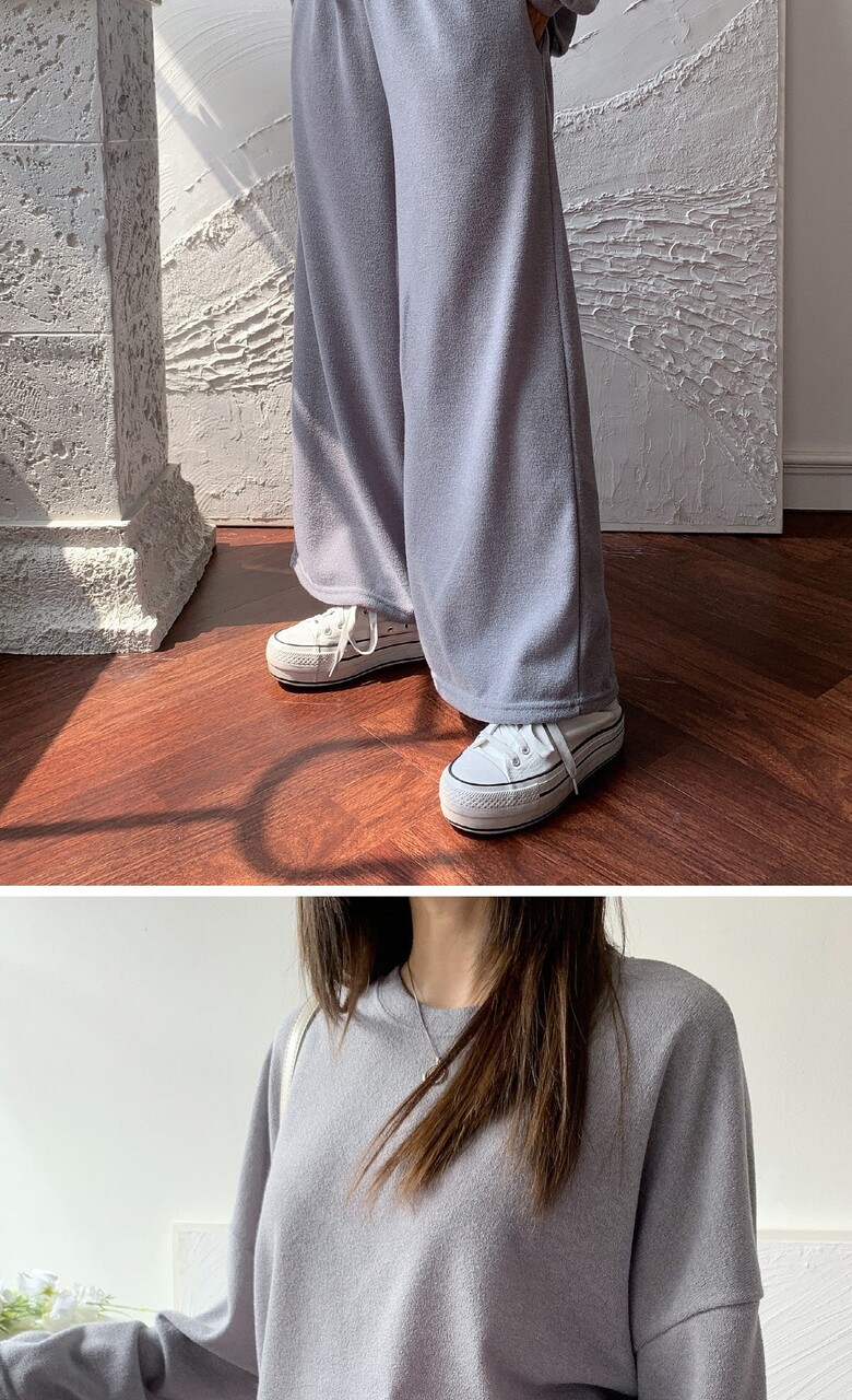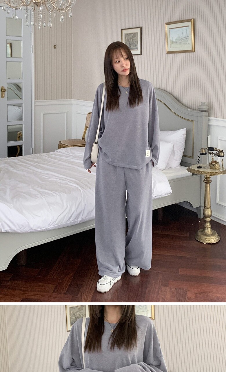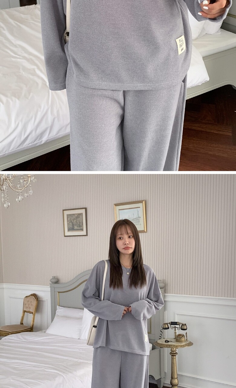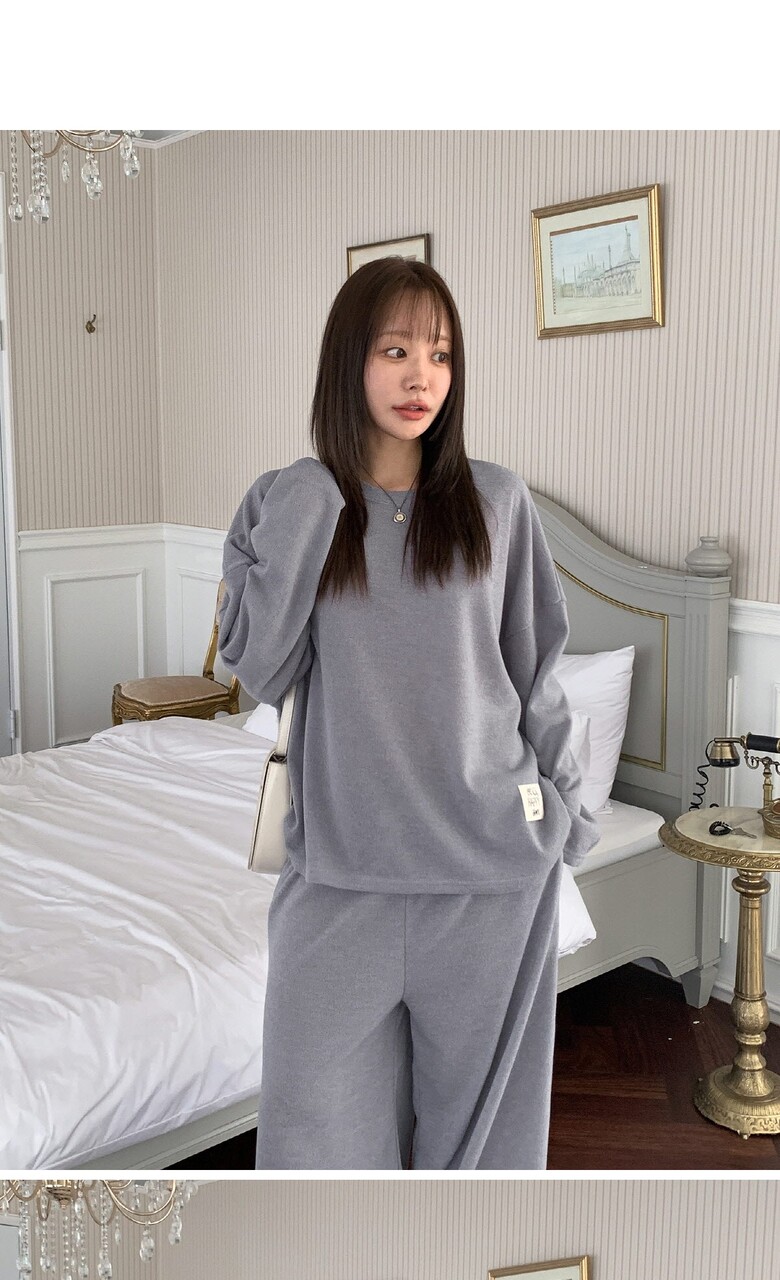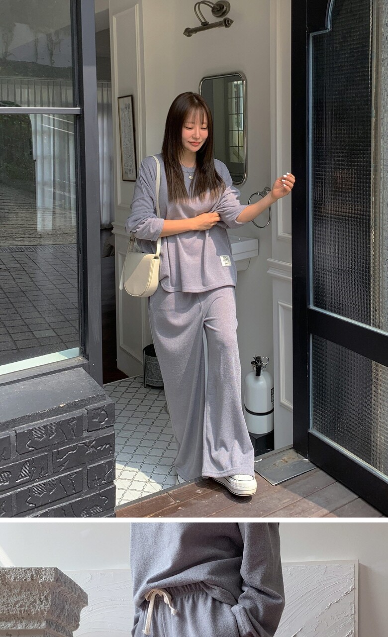 네쥬 여성 가을 기본 라운드넥 긴팔 티셔츠 밴딩바지 세트