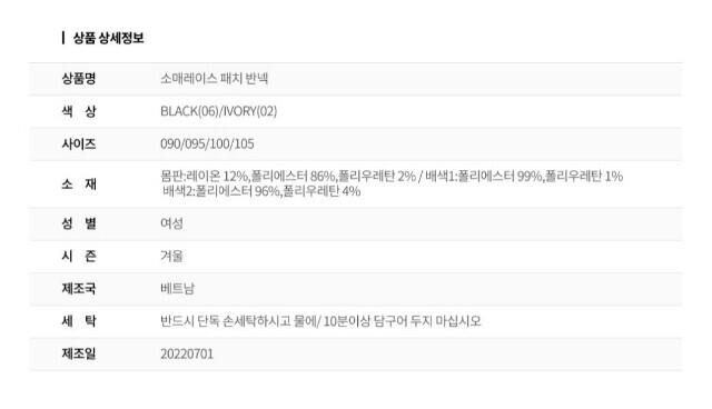 6. 세탁방법 및 취급시 주의사항 | 상품상세참조 |
