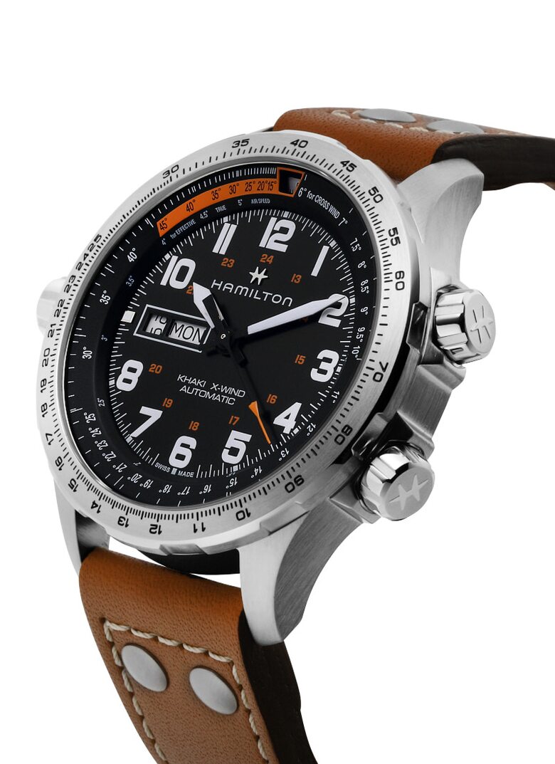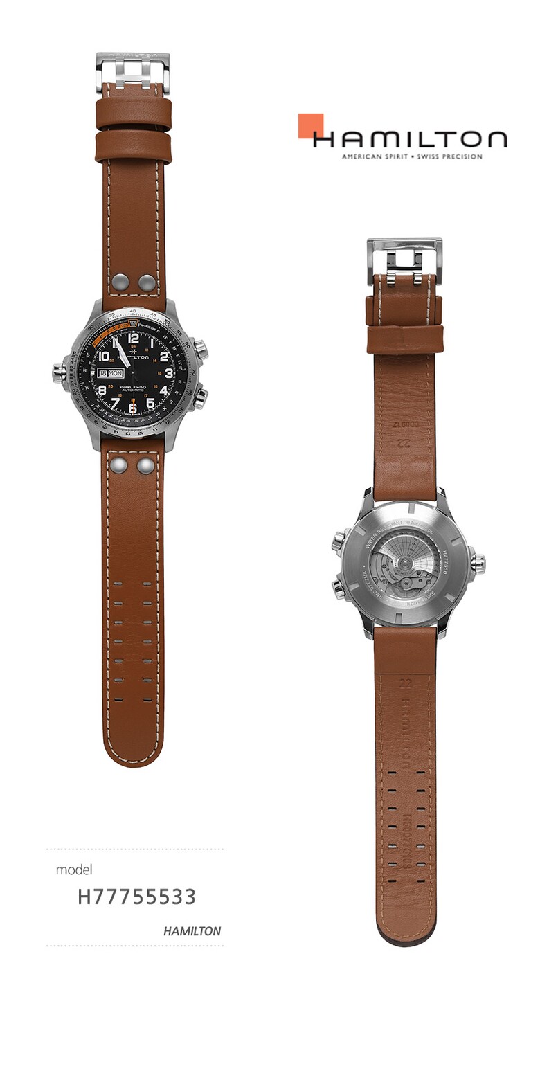 해밀턴 H77755533 카키 에비에이션 엑스윈드 남성 오토매틱 가죽시계