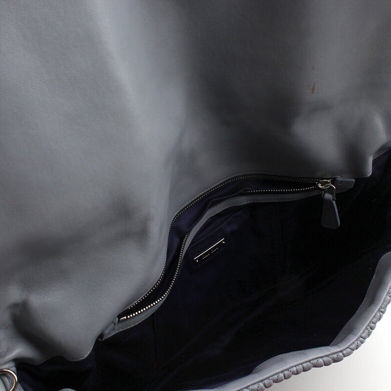 내부: 네이비블루 패브릭 라이닝. 지퍼포켓 1개, 오픈포켓 1개. 상태 양호