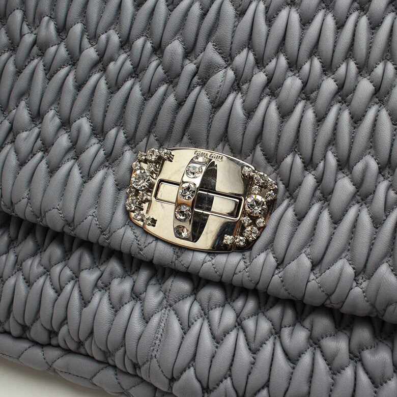미우미우 그레이 마틀라세 빅 클러치백을 선보입니다.