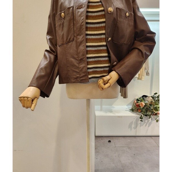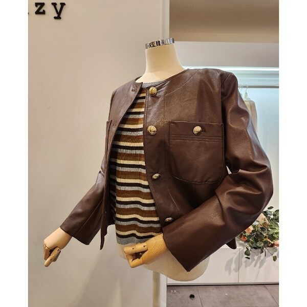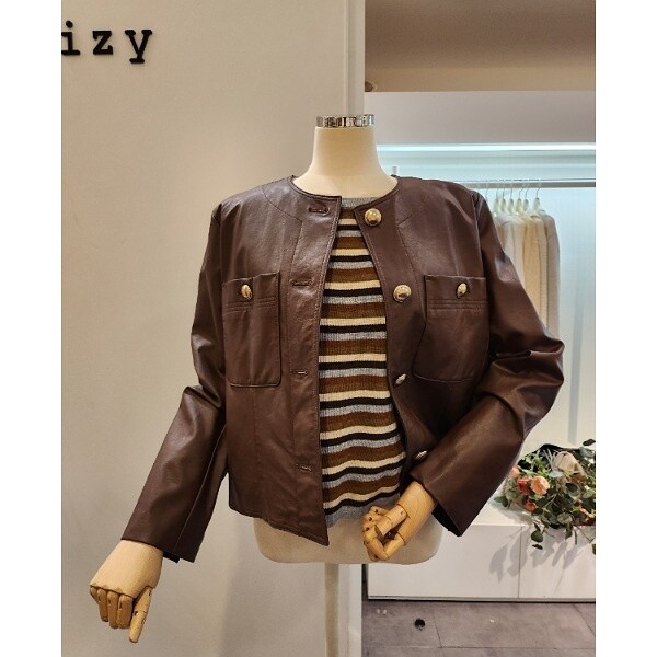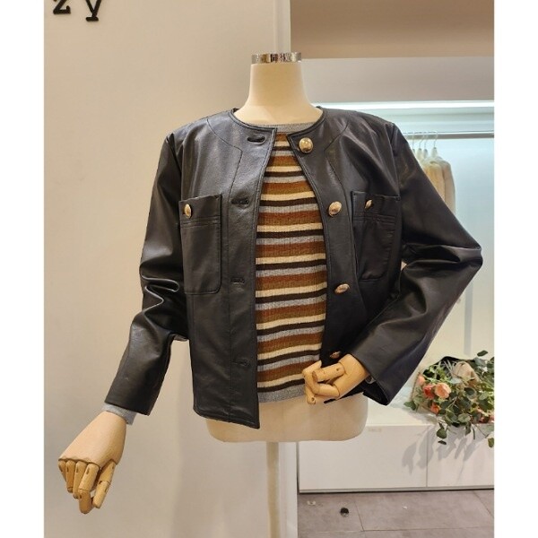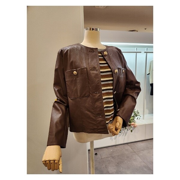 CM7WLJ01_라운드넥 버튼 레자자켓
