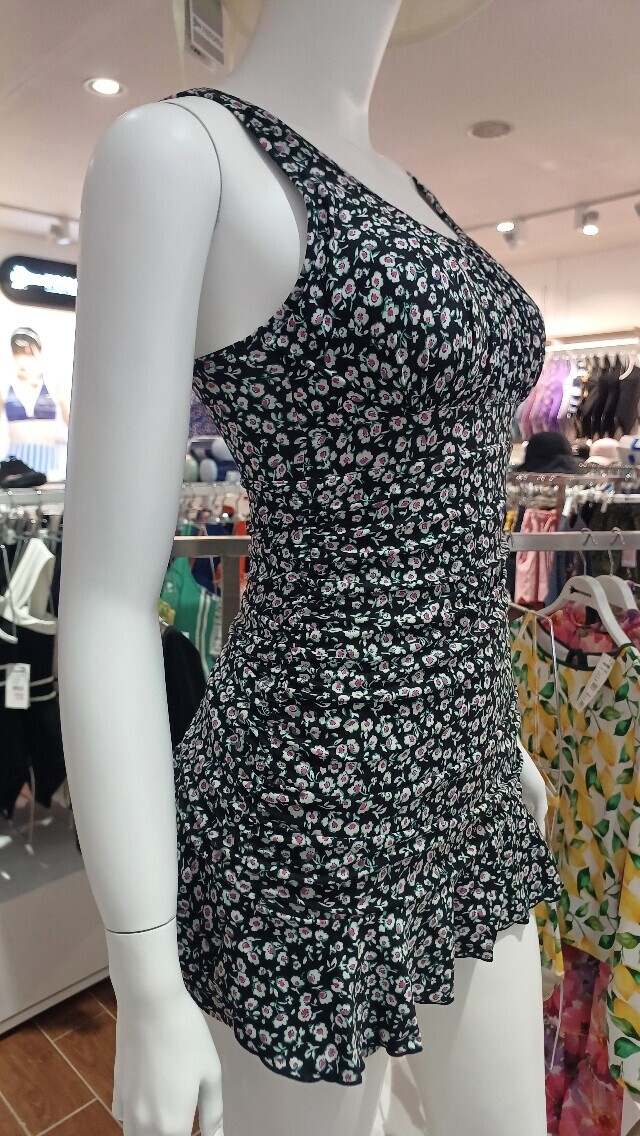 잔꽃무늬가 여성스러움을 더하는 비치 수영복 입니다. 원피스에 2부레깅스가 덧대어 있어 체형커버에 좋으며|*| 가슴 주름 디자인으로 볼륨감 UP. 어깨 끈 조절로 밀착감이 좋습니다. 크롭래쉬가드나 커버업으로 코디 추천 드립니다.