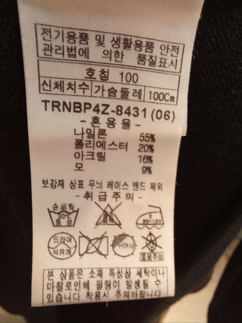 1. 제품 소재 (섬유의 조성 또는 혼용률을 백분율로 표시, 기능성인 경우 성적서 또는 허가서) 니트, 나일론 55%, 폴리에스테르 20%, 아크릴 16%, 모 9%