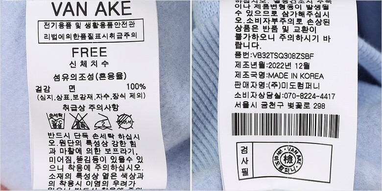 | 6. 세탁방법 및 취급시 주의사항 | 상세페이지 참조 |