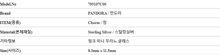판도라 참 793107C00 모먼트 핑크 미니 무라노 참 당일발송