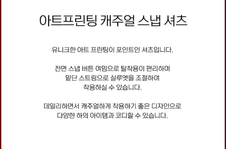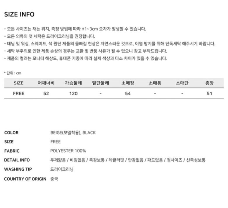 | 1. 제품 소재 (섬유의 조성 또는 혼용률을 백분율로 표시, 기능성인 경우 성적서 또는 허가서) | 상품상세참조 |