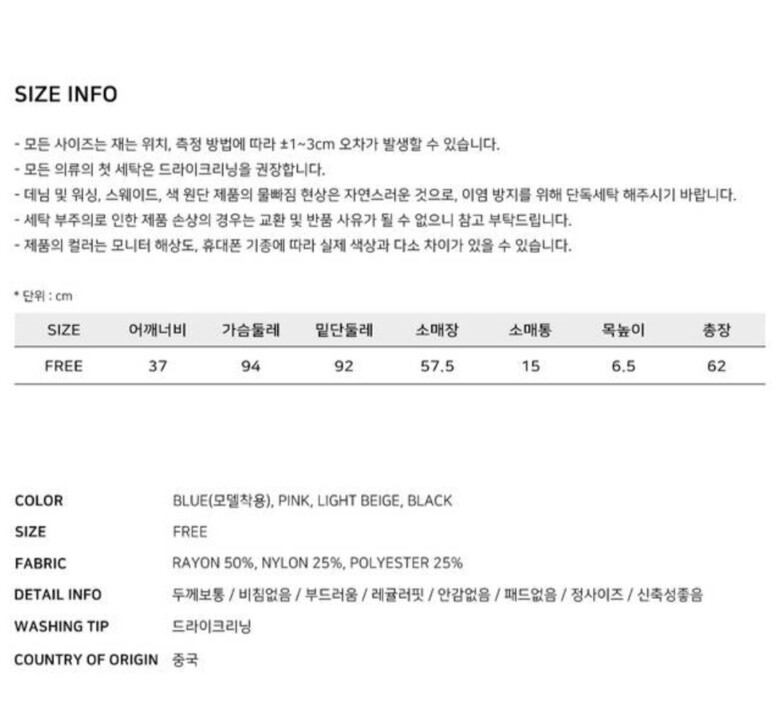 | 6. 세탁방법 및 취급시 주의사항 | 상품상세참조 |