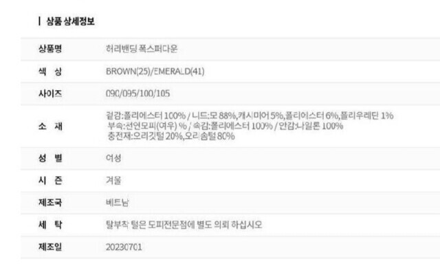 1. 제품 소재 (섬유의 조성 또는 혼용률을 백분율로 표시, 기능성인 경우 성적서 또는 허가서) 상품상세참조
