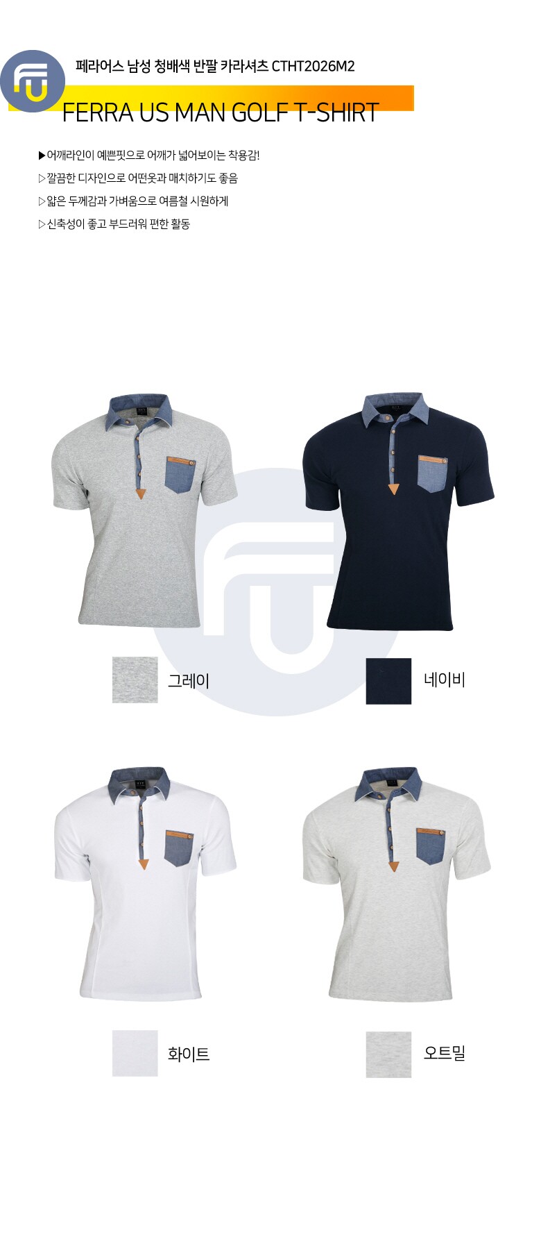 페라어스 남성 청배색 반팔 카라셔츠 CTHT2026M2
