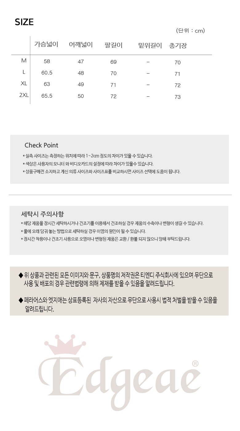 • 처음 배송된 상품상태와 다를 경우(세탁/착용 후 외출하신 경우) 반품이 불가합니다.