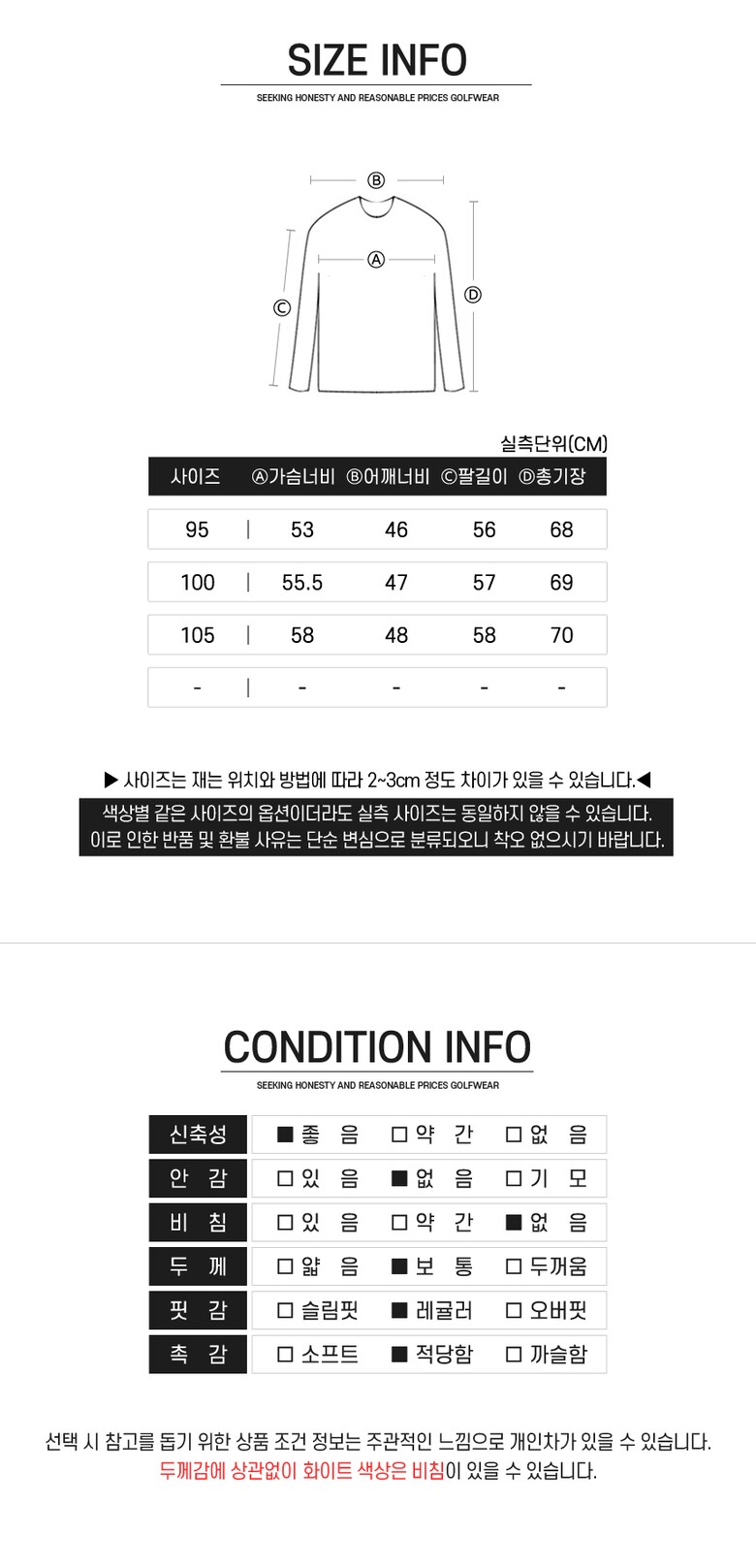 | 1. 제품 소재 (섬유의 조성 또는 혼용률을 백분율로 표시, 기능성인 경우 성적서 또는 허가서) | 상세설명참고 |