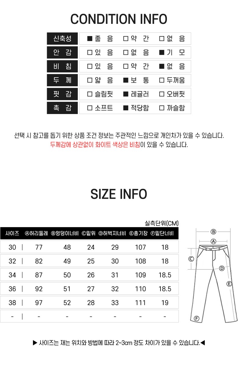 | 1. 제품 소재 (섬유의 조성 또는 혼용률을 백분율로 표시, 기능성인 경우 성적서 또는 허가서) | 상세설명참고 |