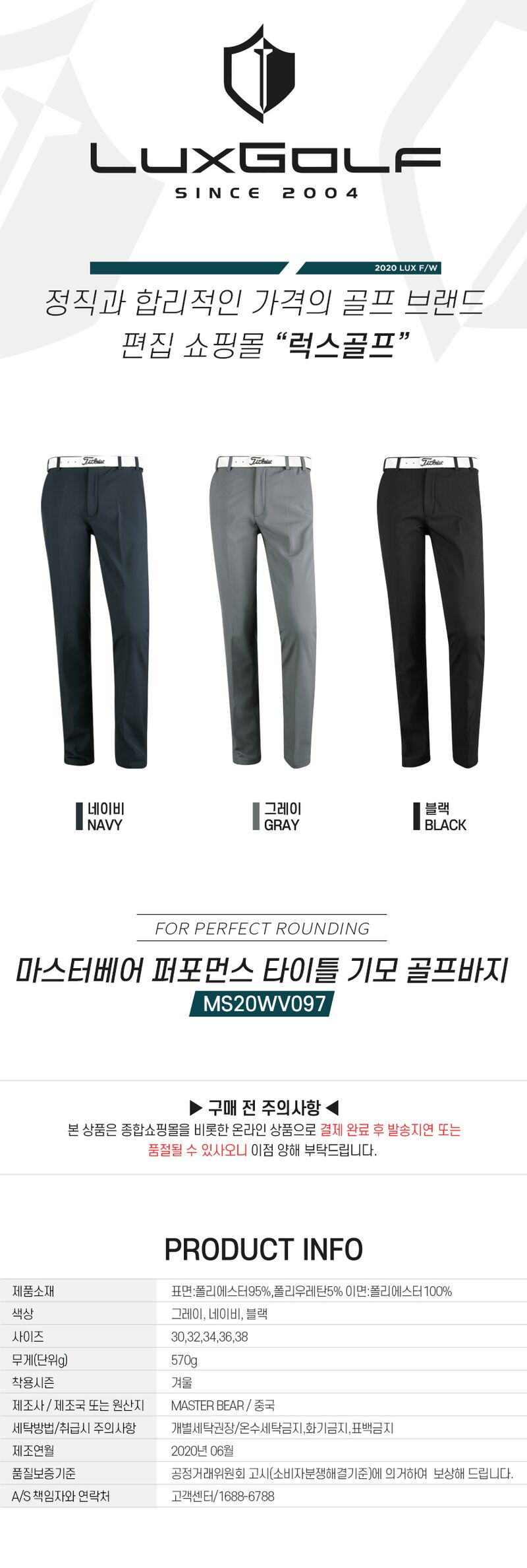 럭스골프 MS20WV097 남성 마스터베어 퍼포먼스 타이틀 기모 골프바지