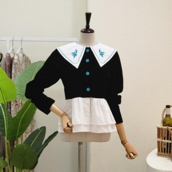FW2L7BL05094_빅카라 벨벳 배색 블라우스