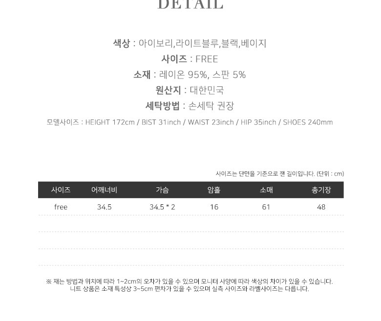 2. 색상 | 아이보리,라이트블루,블랙,베이지 |