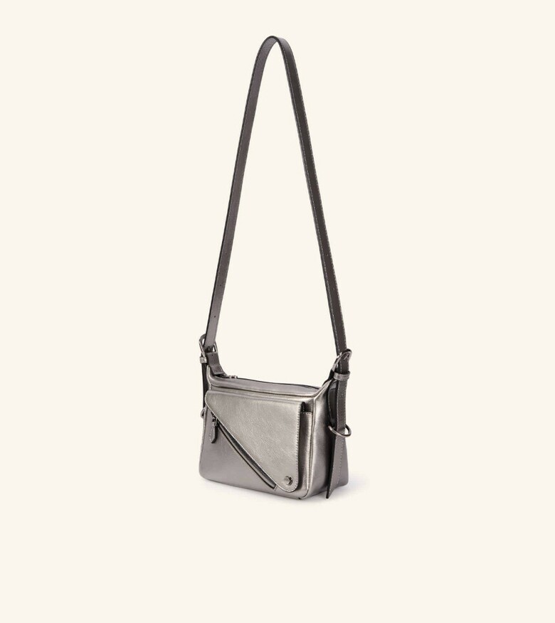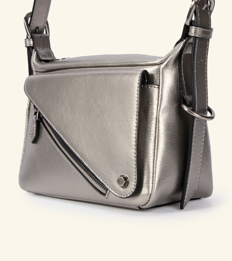 라이더 재킷에서 영감을 얻어 디자인된 크로스 바디백입니다