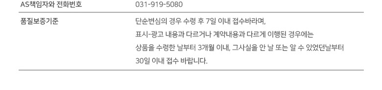 7. 품질보증기준 | 관련법 및 소비자분쟁해결기준에 따름 |