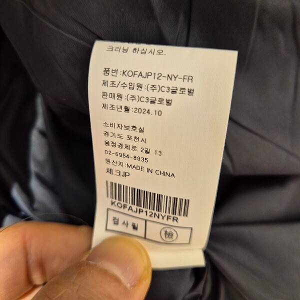 제품소재 : 겉감 폴리에스테르60% 나일론40% 안감 폴리에스테르100%