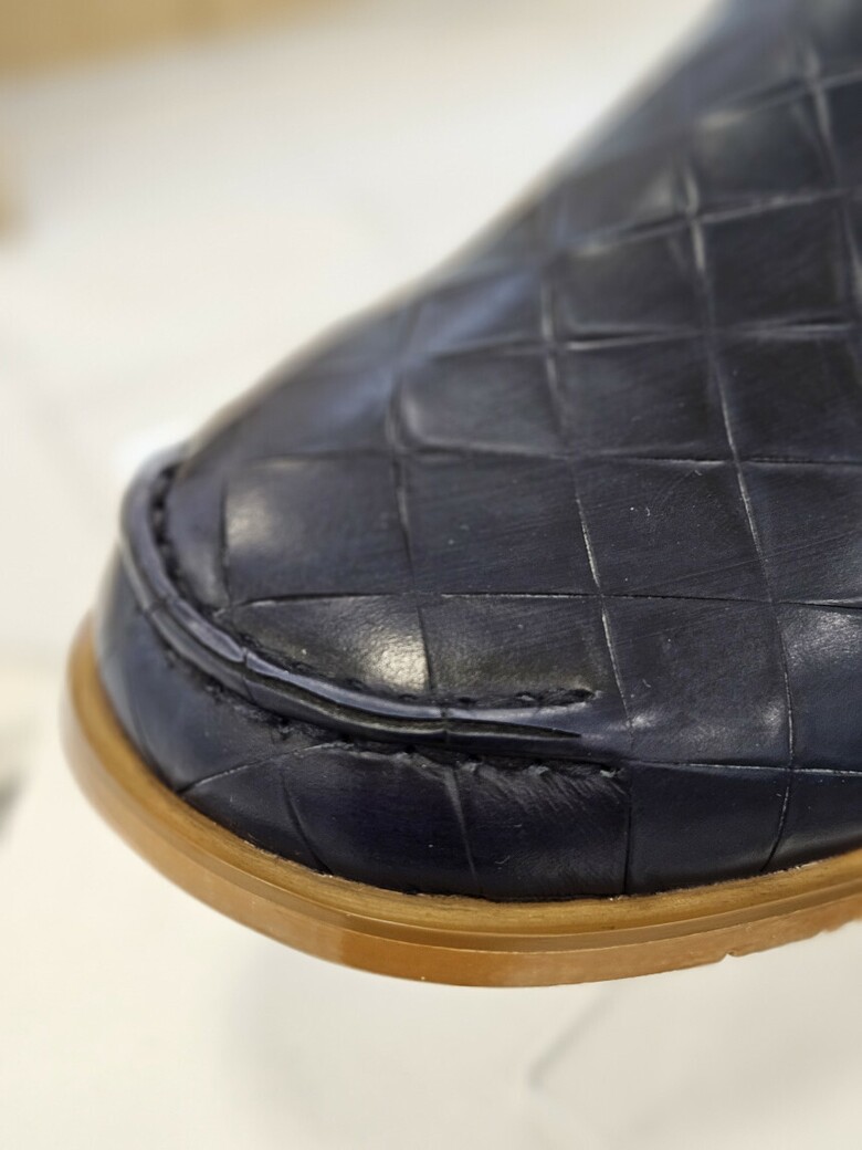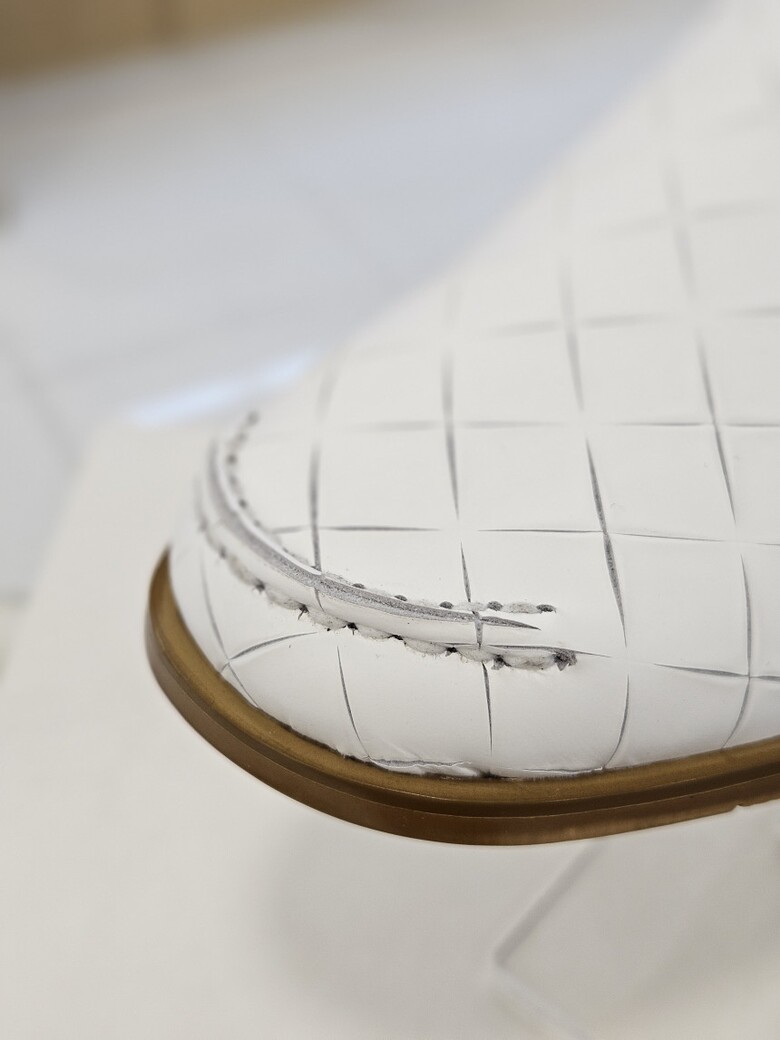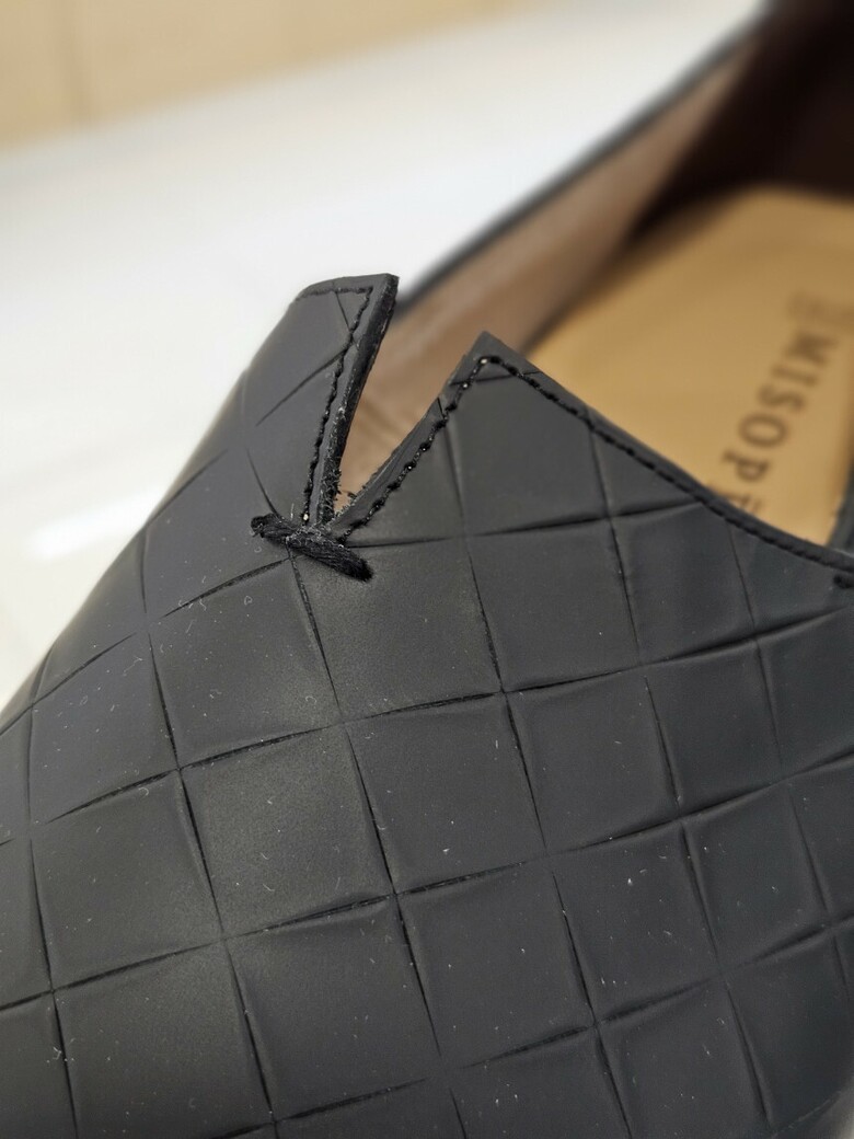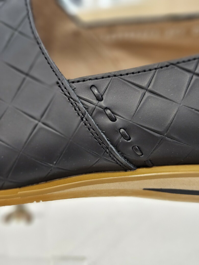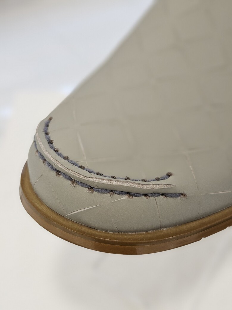 부드러운 가죽소재 와 발등칼집 무늬 가죽으로