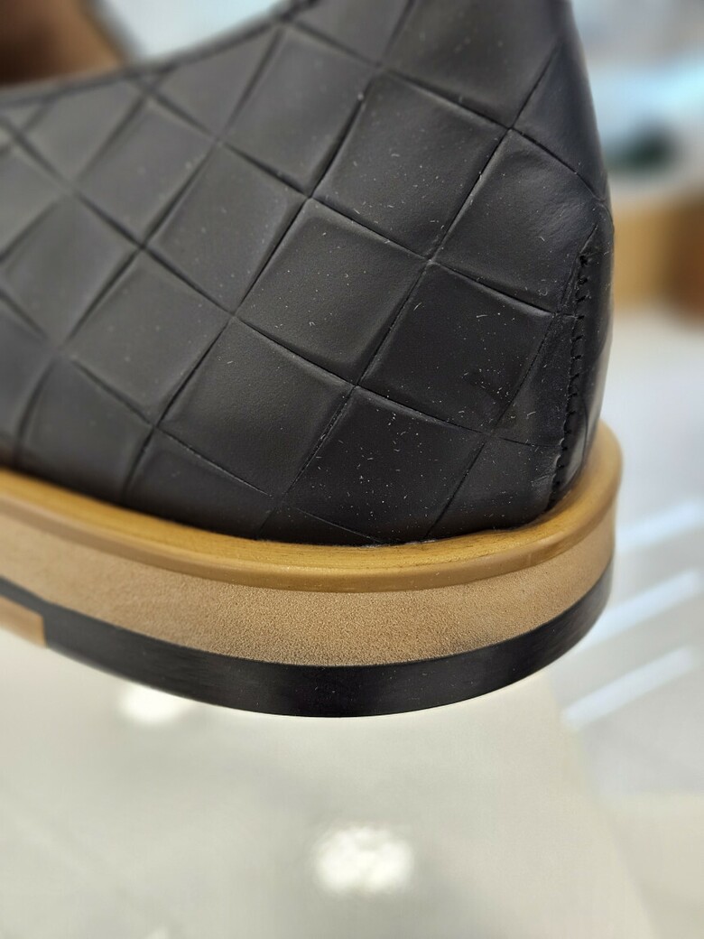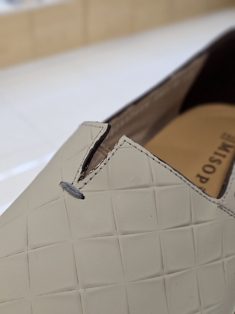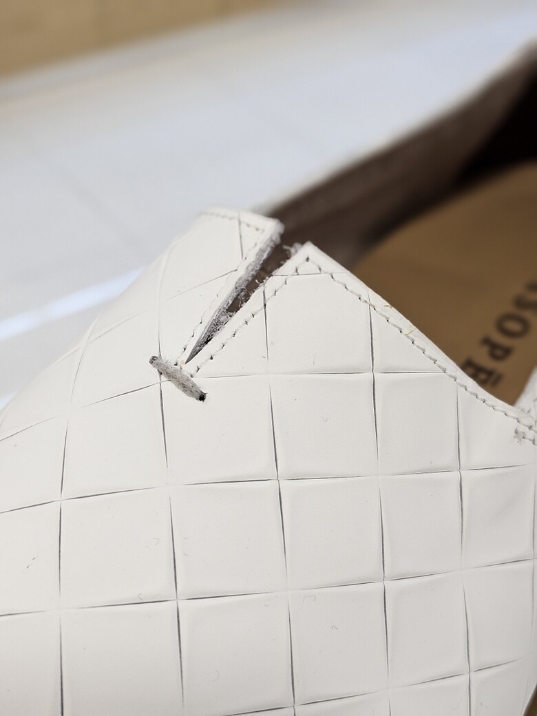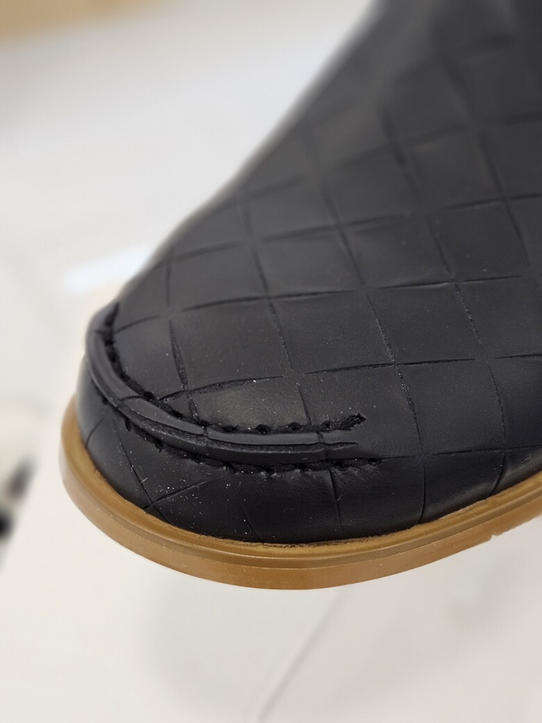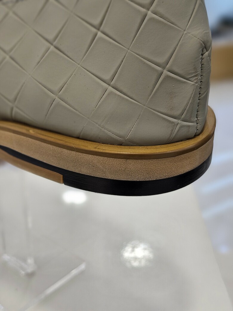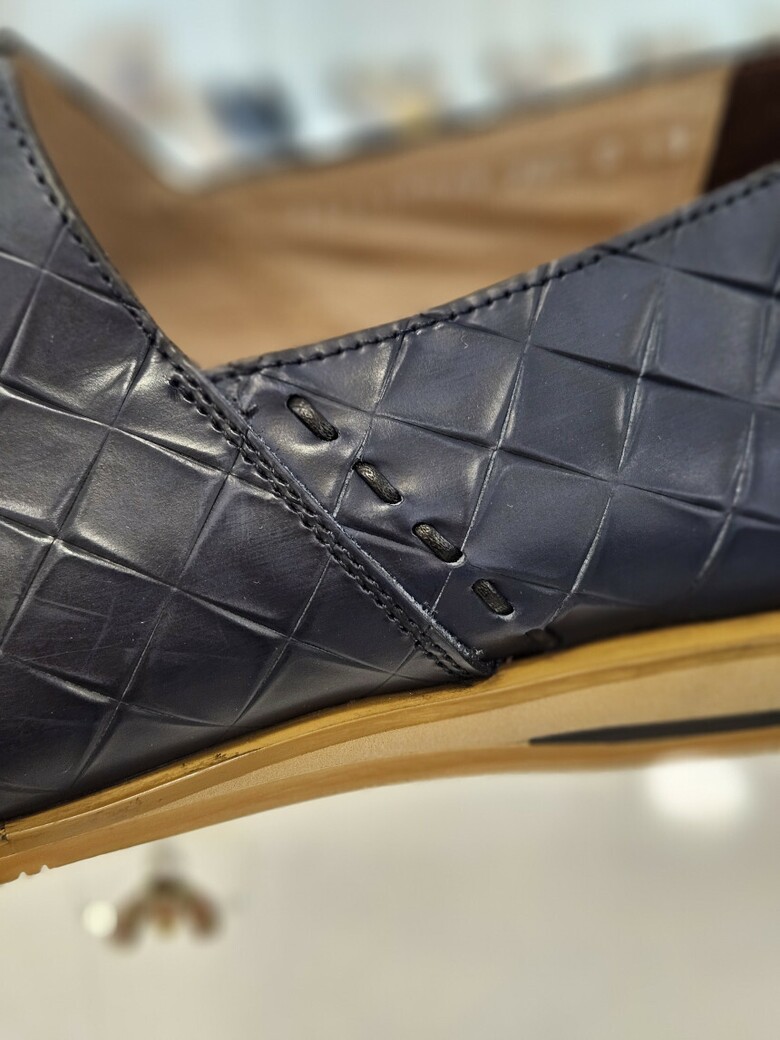 부드러운 가죽소재 와 발등칼집 무늬 가죽으로