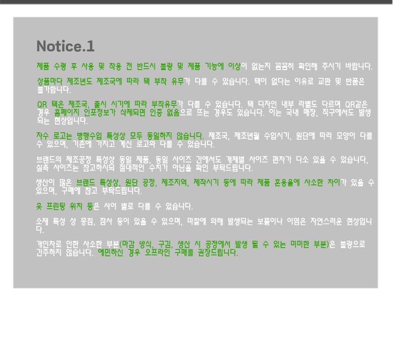 상품불량에 의한 반품, A/S, 품질보증 및 피해보상 등에 관한 사항은 소비자 분쟁해결기준(공정거래위원회 고시) 구매자가 미성년자인 경우에는 상품 구입시 법정대리인이 동의하지 아니하면 미성년자 본인 또는 법정대리인이 구매취소 할 수 있습니다. |
