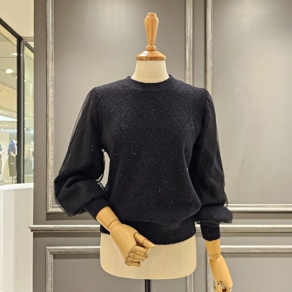 F/W신상품?이중 레이스소매 디자인의 라운드 니트입니다