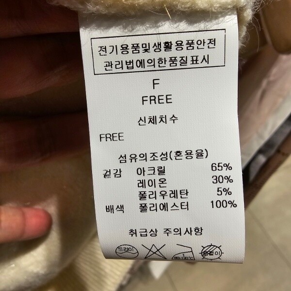 제품소재 : 아크릴 65% 레이온 30% 폴리우레탄 5% / 배색 폴리에스터 100%