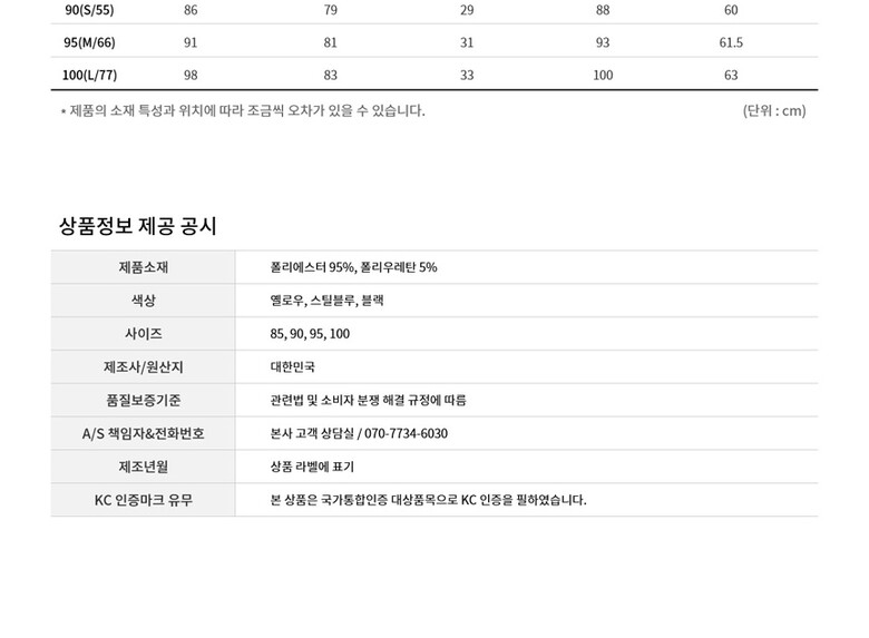 1. 제품 소재 (섬유의 조성 또는 혼용률을 백분율로 표시, 기능성인 경우 성적서 또는 허가서) 상품 이미지 참조