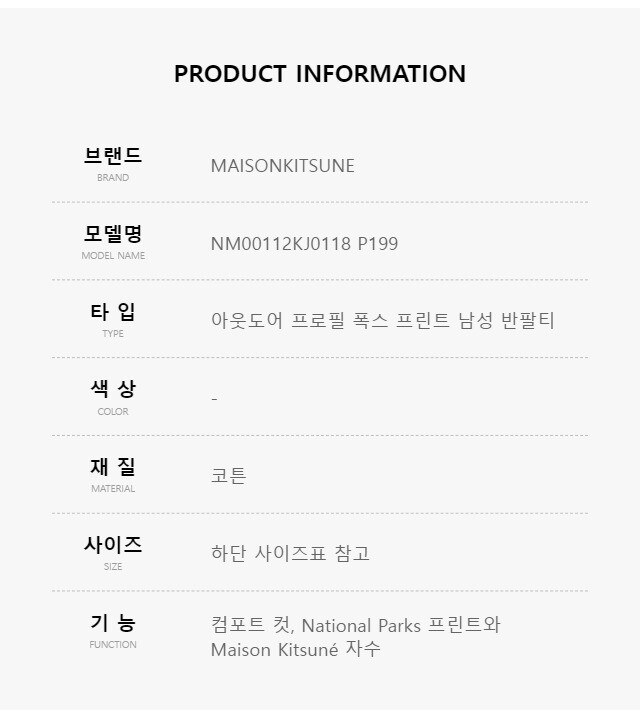 메종키츠네 반팔 NM00112KJ0118 P199 아웃도어 프로필 폭스 프린트 남성반팔티 당일발송