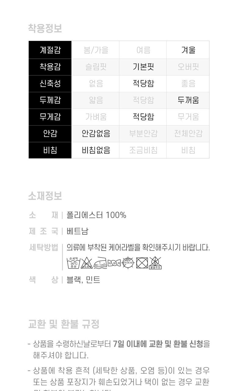 6. 세탁방법 및 취급시 주의사항 | 상품상세참조 |