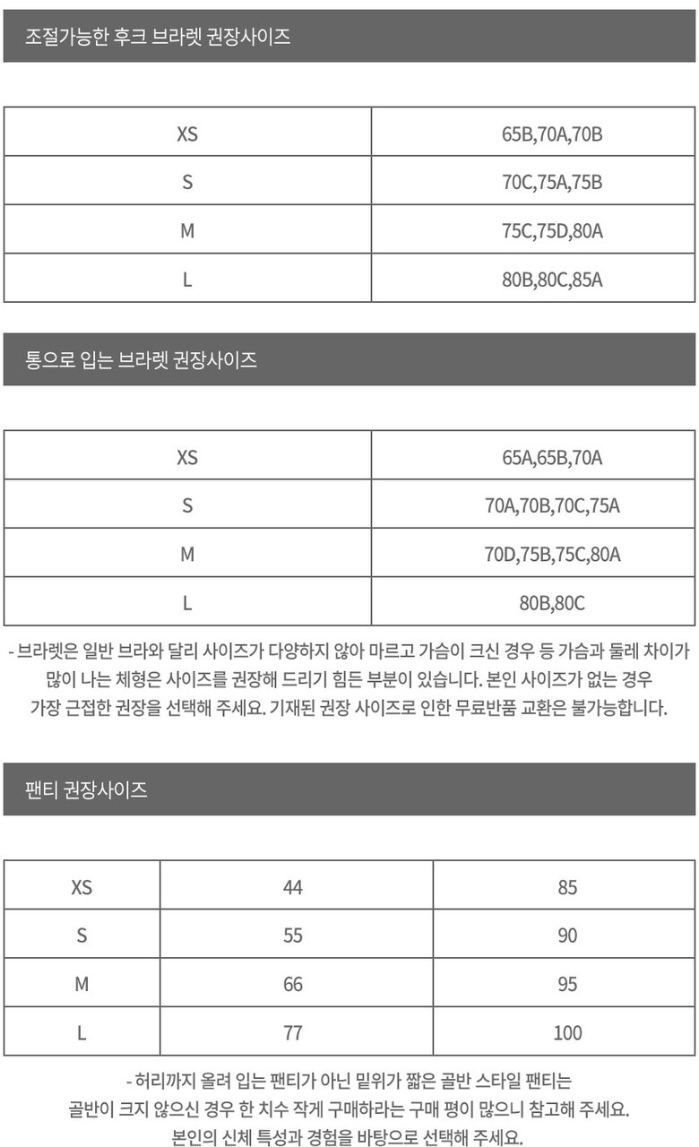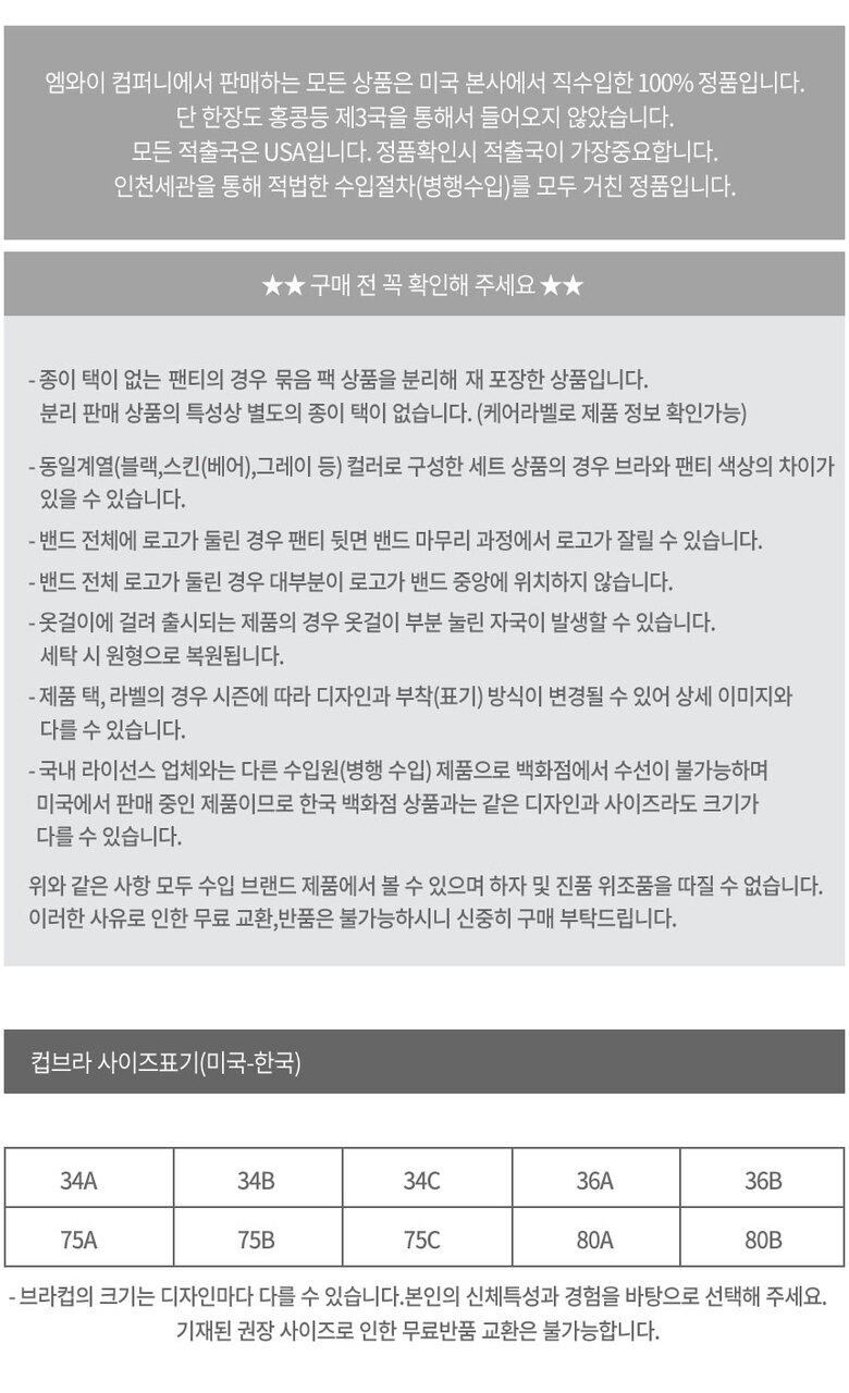 1. 제품 소재 (섬유의 조성 또는 혼용률을 백분율로 표시, 기능성인 경우 성적서 또는 허가서) 브라 : COTTON 69%, REPROCESSED COTTON 21%, ELASTANE 10% 팬티 : COTTON 95%, ELASTANE 5%