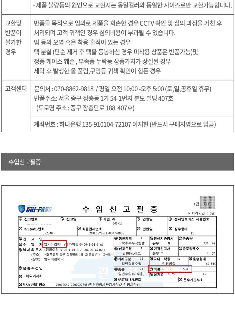 • 반품환불은 상품 회수 후 처리 됩니다.
