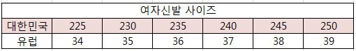 사이즈 : 225,230,235,240,245,250