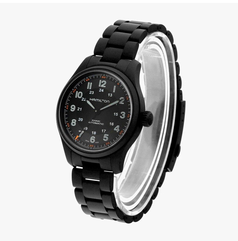 해밀턴 H70665130 카키 필드 티타늄 오토매틱 남성 가죽시계