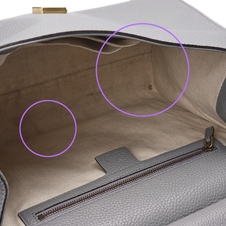 상태 : 바디 스크래치 및 가죽 마모 등 사용감, 모서리와 테두리 유약 갈라짐, 핸들스트랩 마모와 때탐 및 스크래치, 숄더스트랩 마모와 주름 및 전체적으로 유약 갈라짐, 플랩 좌측 테두리 벌어짐, 금속 스크래치, 플랩 내부 잔 얼룩 및 좌 우측 연결부 이염, 내부 때탐과 이염 및 입구 마모