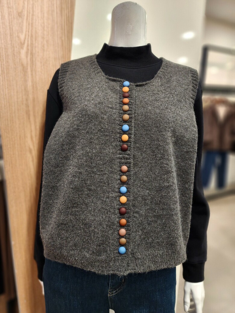 룸나인-콩알 단추 니트조끼(SQ3KV2100)