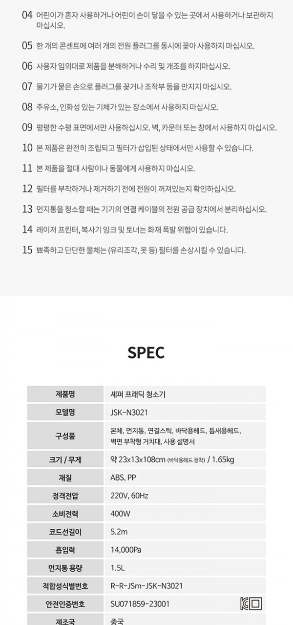 3. 전기용품 안전인증 필 유/무 | 유 |