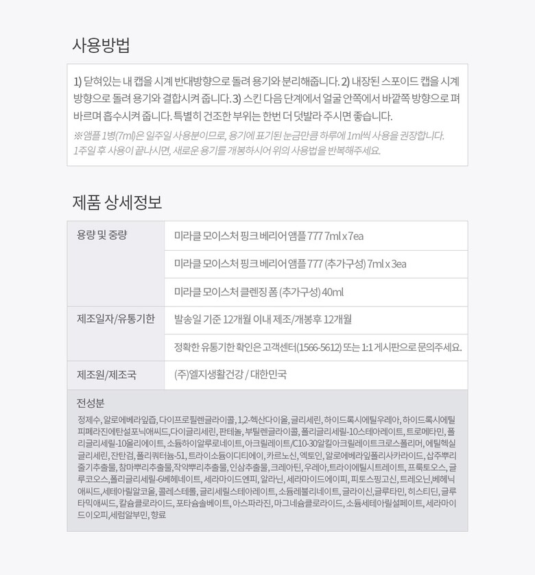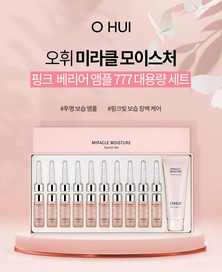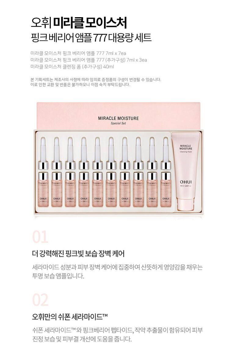 오휘 미라클 모이스처 핑크 베리어 앰플 777 대용량/피부결 보습 탄탄장벽케어