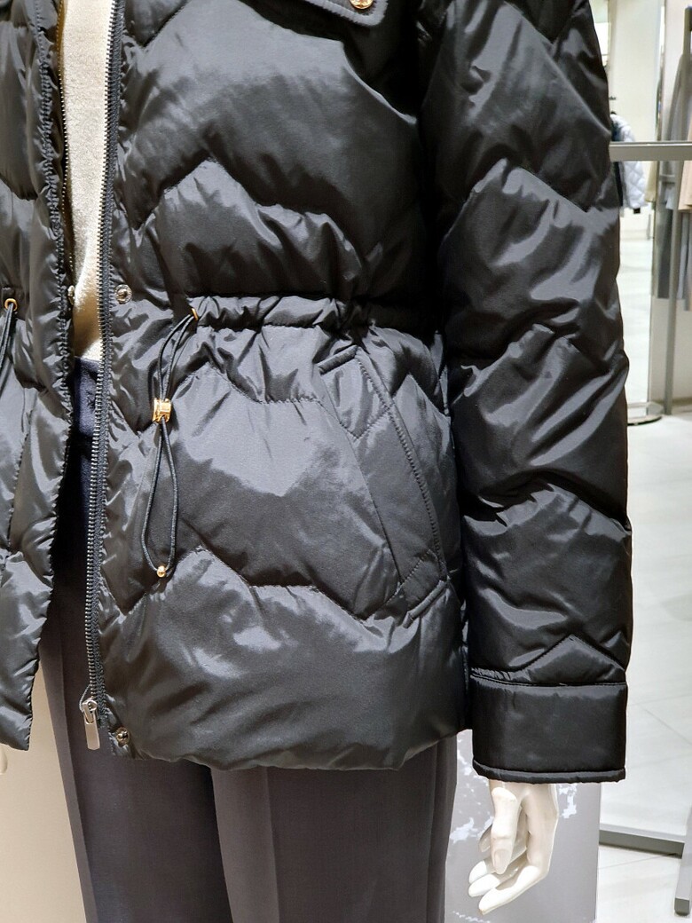 여유 로운 핏에 허리 스트링으로 핏 조절이 가능한 덕 다운재킷입니다.