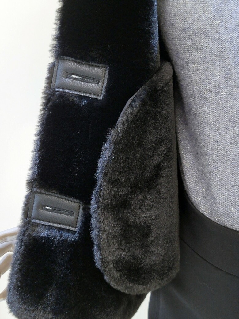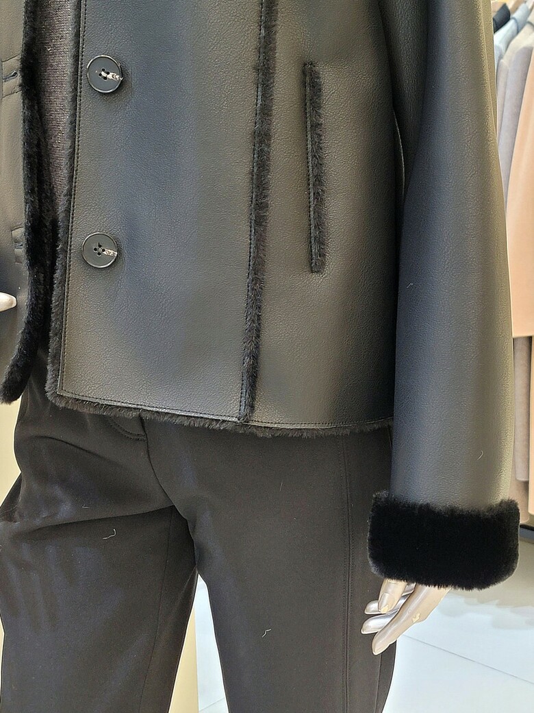 이면 시어링 소재로 칼라와 슬리브 헴 롤업 배색을