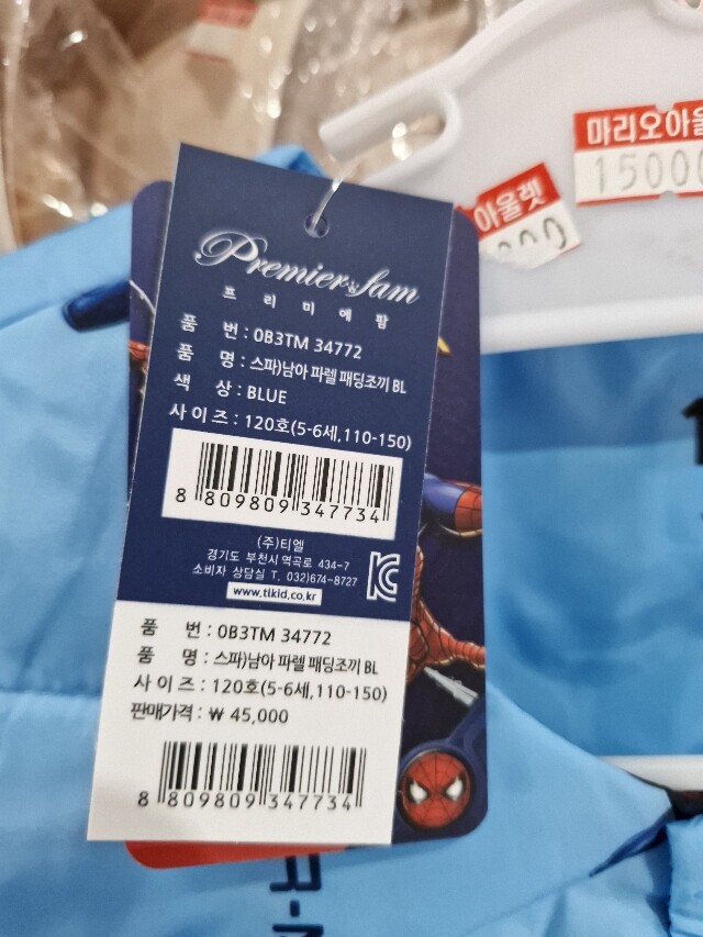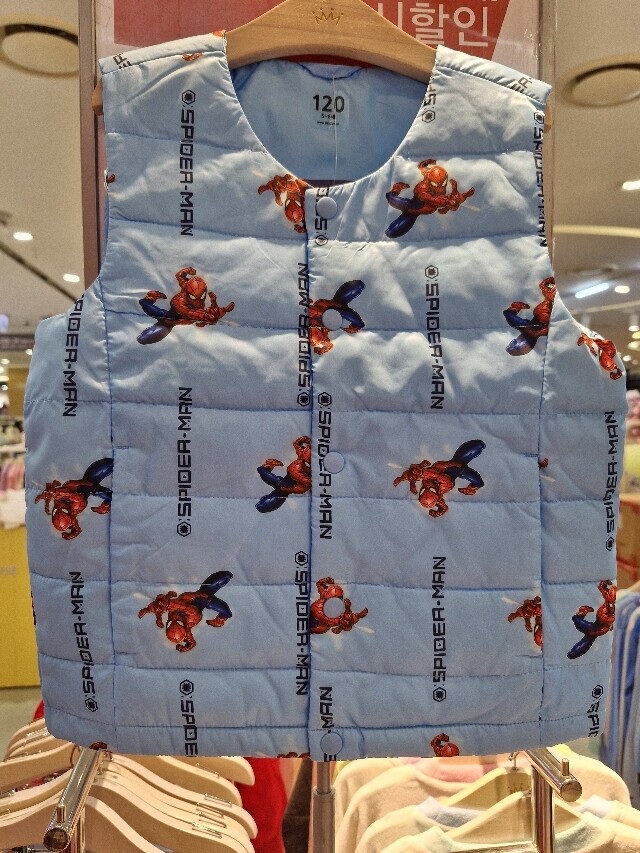 남자아이들이 좋아하는 스파이더맨 패딩조끼입니다.