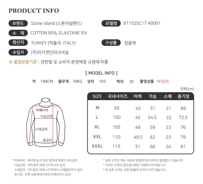 | 1. 제품 소재 (섬유의 조성 또는 혼용률을 백분율로 표시, 기능성인 경우 성적서 또는 허가서) | 상세페이지 참조 |