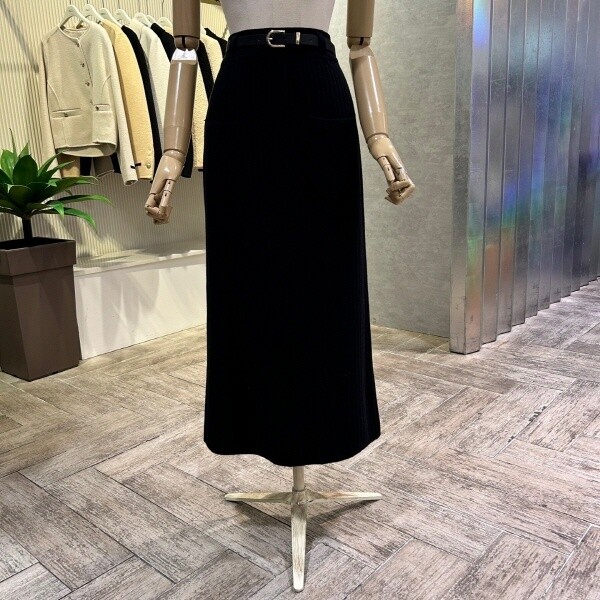 AOZ1HS32A_밴딩 벨티드 포켓 니트 롱 스커트