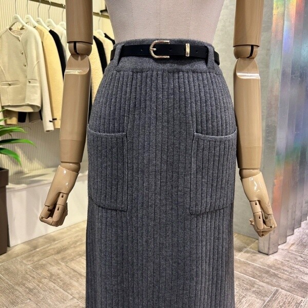 2024년 f/w 신상?밴딩 벨티드 포켓 니트 롱 스커트 입니다.