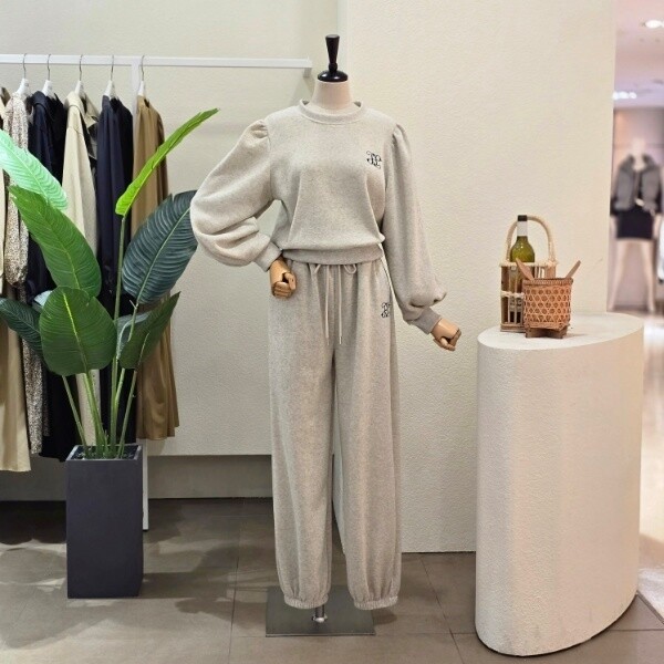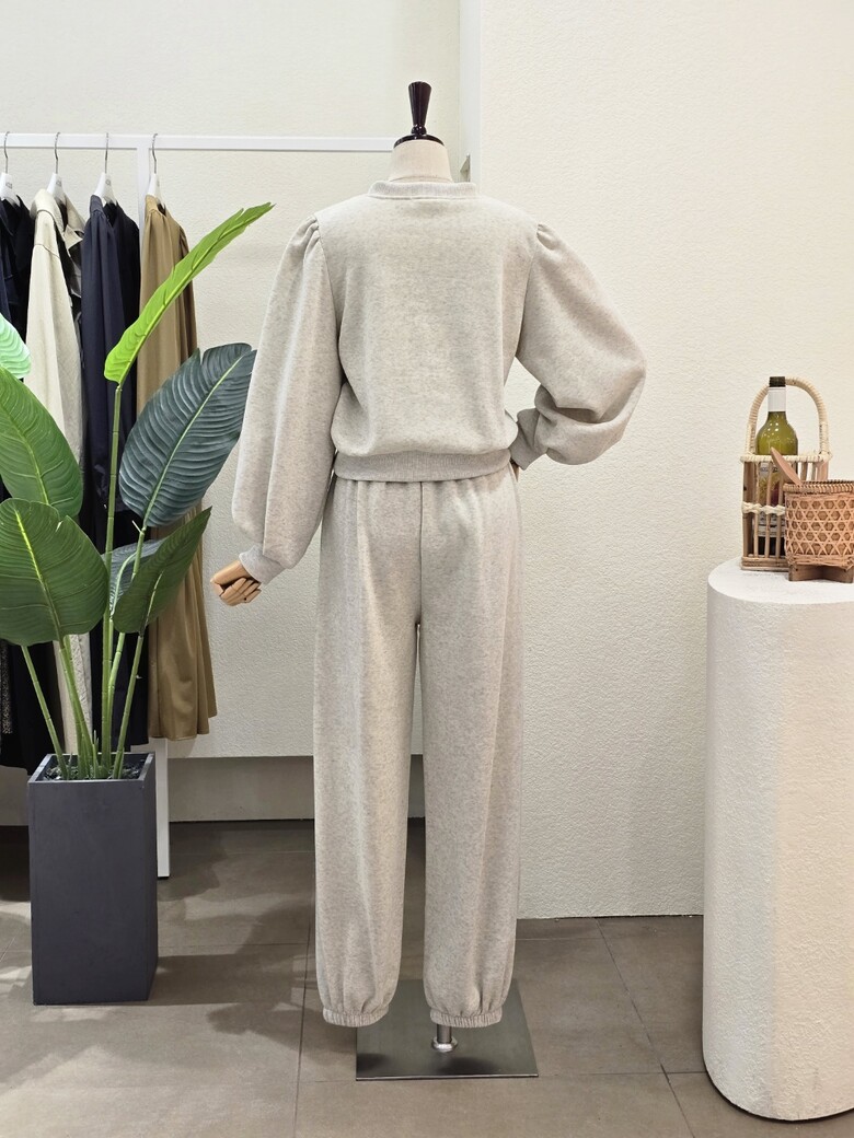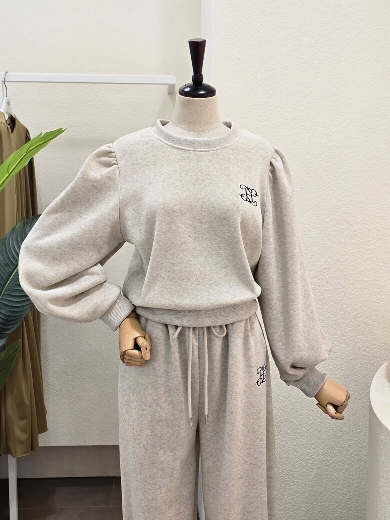 FW4J9ST5999_퍼프 맨투맨 조거 팬츠 세트