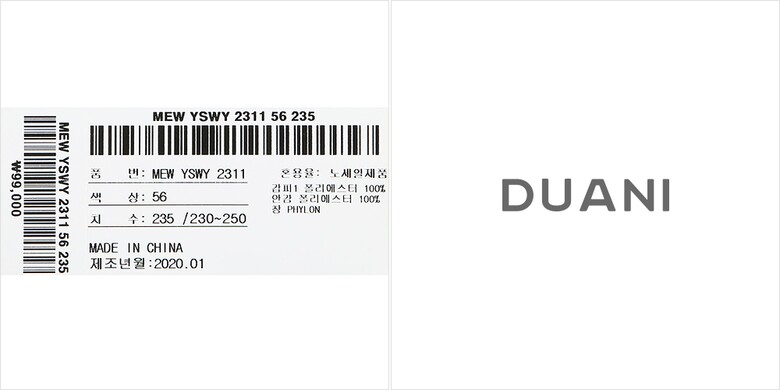 | 1. 제품 소재 (운동화인 경우에는 겉감, 안감을 구분하여 표시) | 겉감: 폴리혼방 |